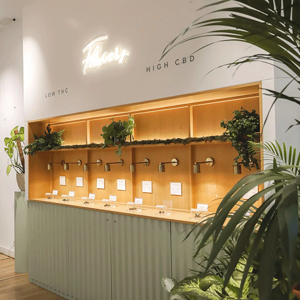 Flores de CBD en los expositores de una tienda de Greenery 420 en Madrid, Barcelona, Valencia, Sevilla, Zaragoza, BIlbao, Cádiz, Galicia, Baiona, A Coruña, Ponferrada, Retiro, Alcobendas, Alicante