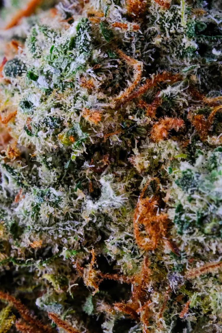 Les fleurs de Gorilla Mandarine sont denses et résineuses, avec une structure robuste qui montre leur grande qualité. Les bourgeons présentent une couleur verte vibrante avec des pistils orange et des trichomes brillants, reflétant leur pureté et leur puissance.